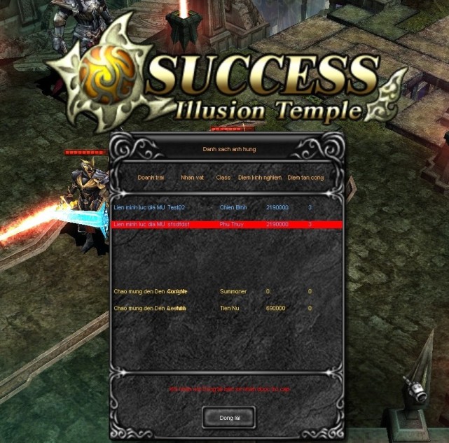 • Thời gian chờ kết thúc, nếu xông vào được trận đấu thì có thể đi vào bên trong đền thờ.